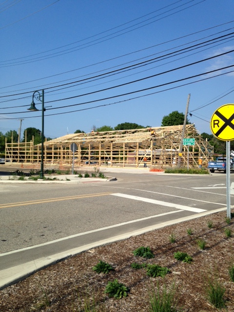 This gives us an idea of how big the store will be!!!! We've been going over and trying to see if our set up will work. The store seems quite a bit larger for the fact that we utilized where the cinder block building was for retail space. We will also have a dog grooming and self serve dog wash area in the back right corner. The bottom picture was taken today, when they finished the trusses on the warehouse.